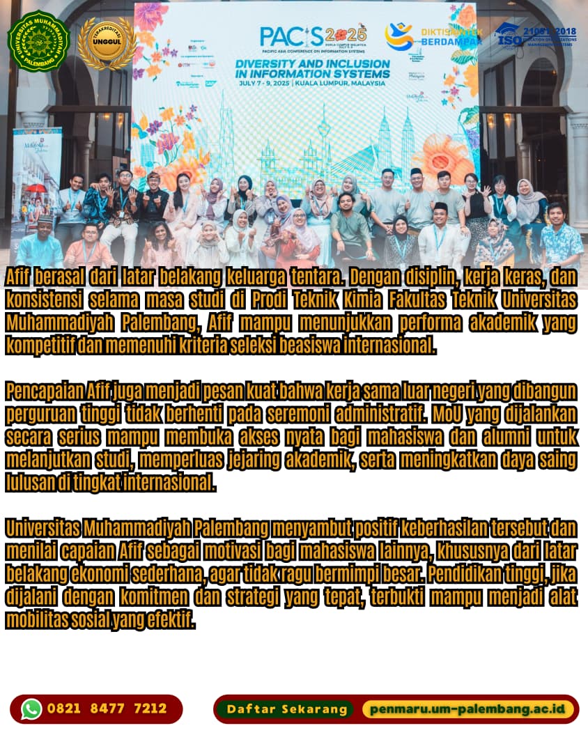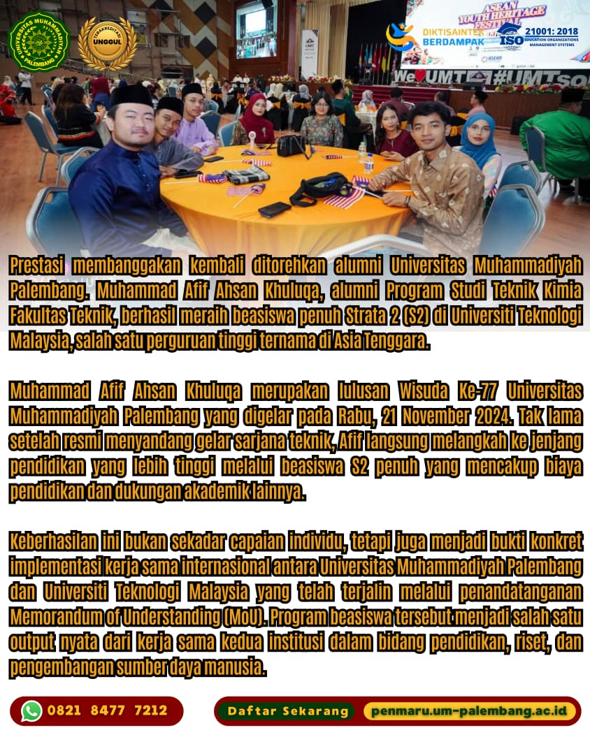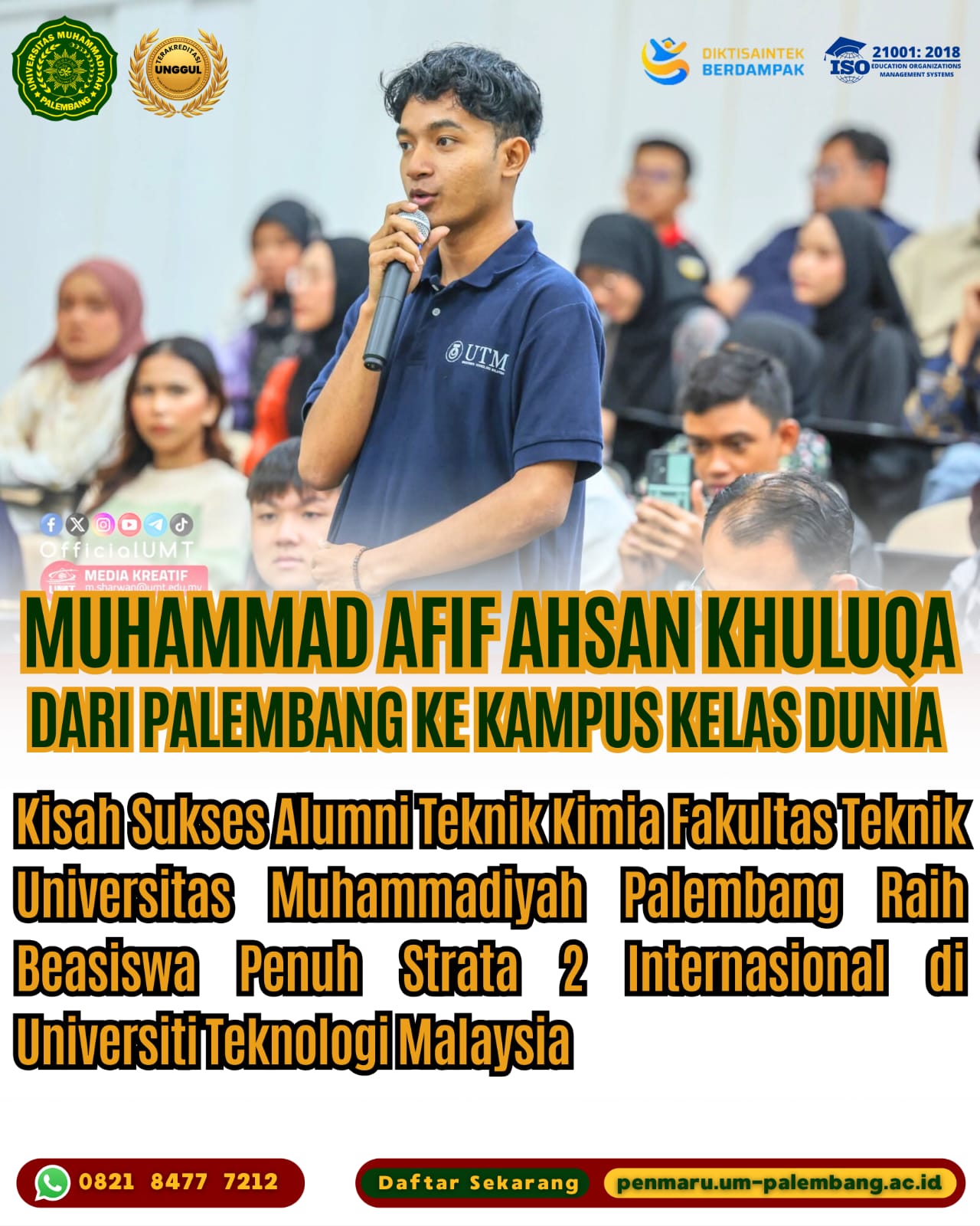 Muhammad Afif Ahsan Khuluqa dari Palembang ke Kampus Kelas Dunia, Afif mampu mencapai beasiswa penuh Strata 2 Internasional di Universitas Teknologi Malaysia, penjelasan selanjutnya ada di foto ya!